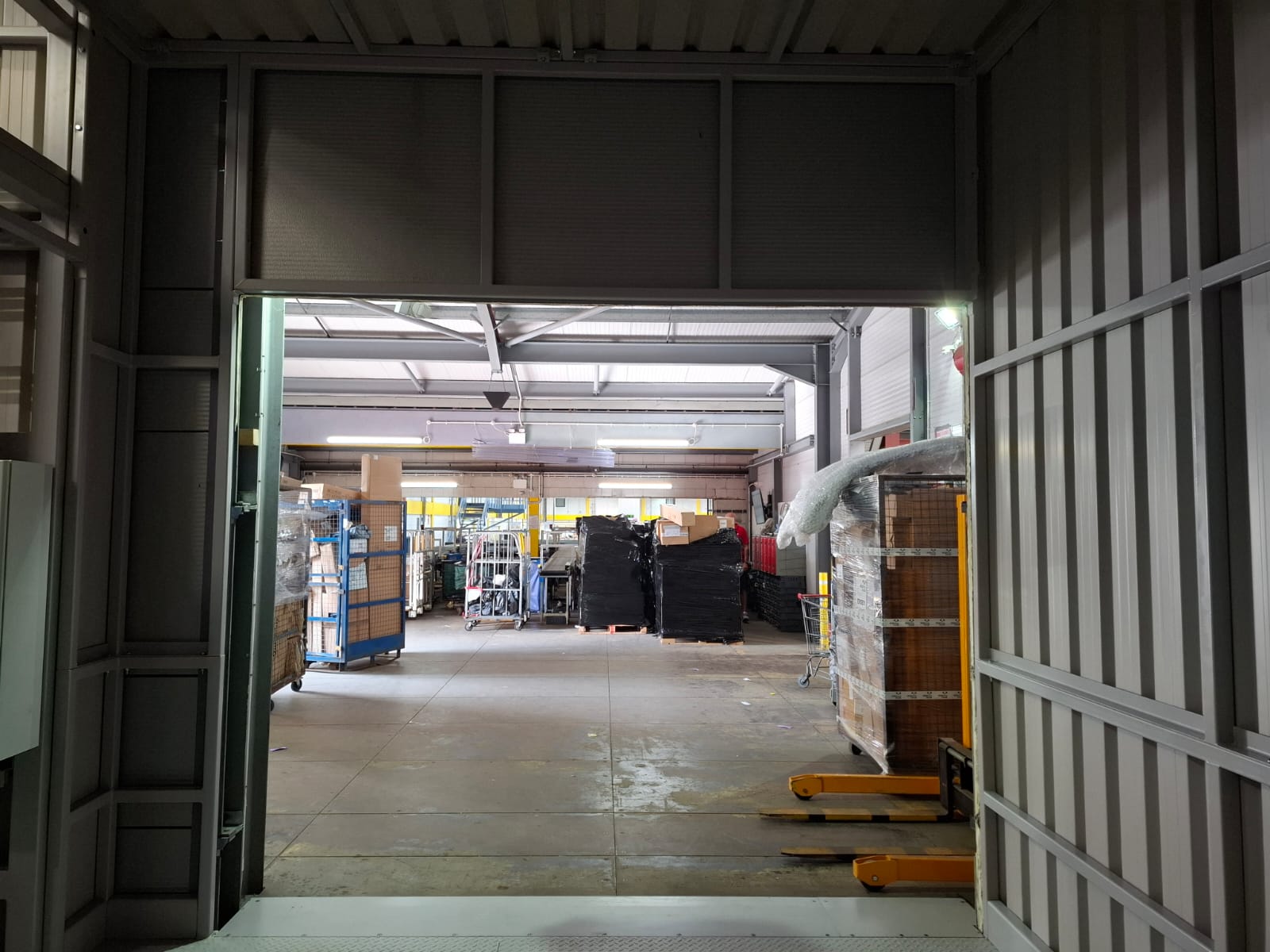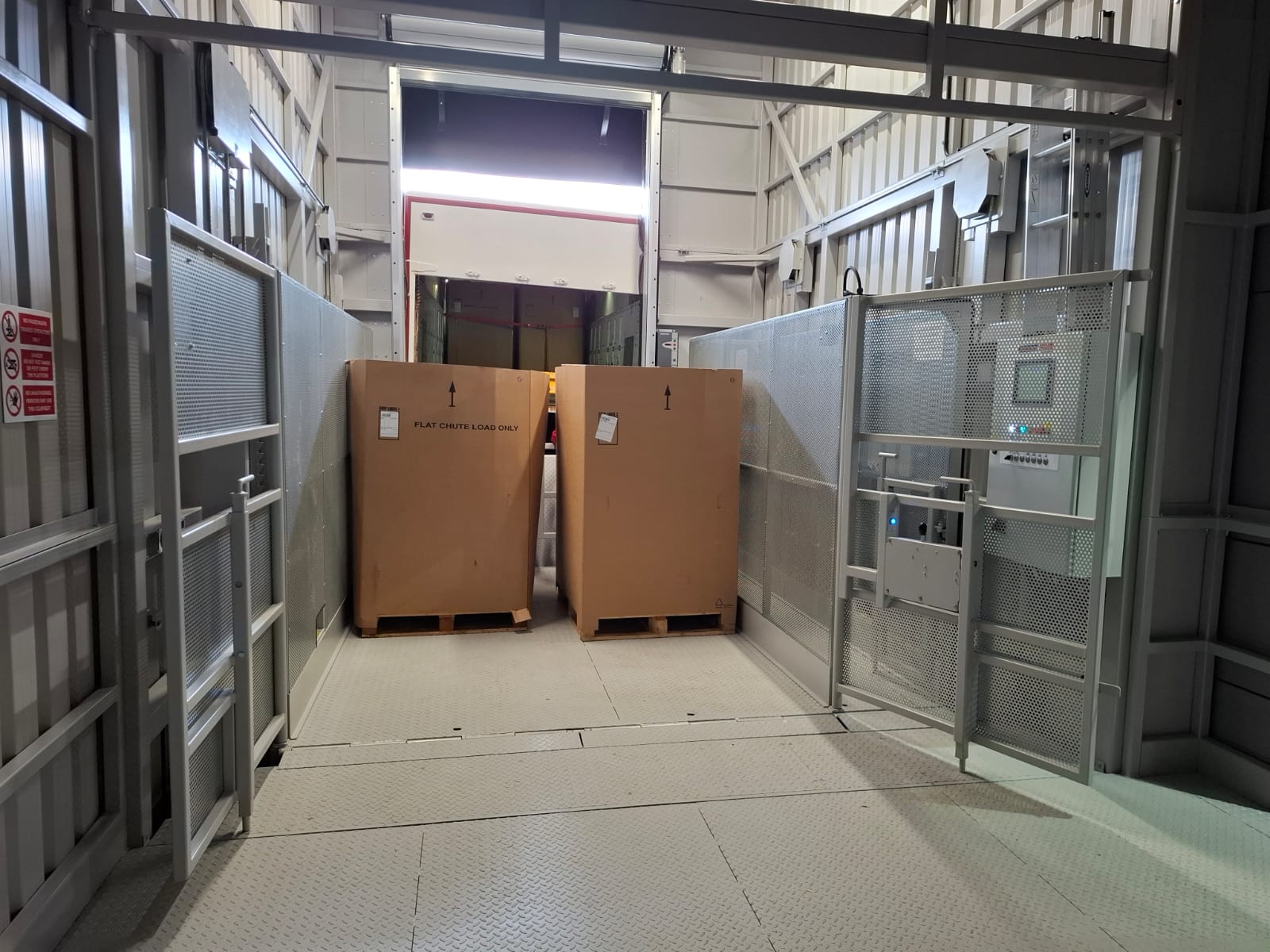 A surface-mounted modular double deck lift was supplied with an adjoining enclosed lobby, creating a fully sealed and self-contained connection between the lift and the existing warehouse. The entire unit was pre-constructed off-site and transported directly from Transdek’s Doncaster facility.